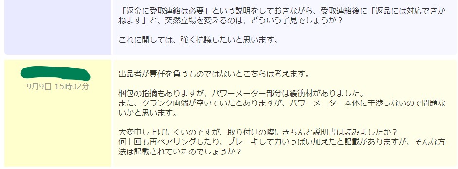 このページは、ヤフオクでの落札商品「ロードバイク用パワーメーター」の不具合状況、梱包不良、付属品の不足について解説します。